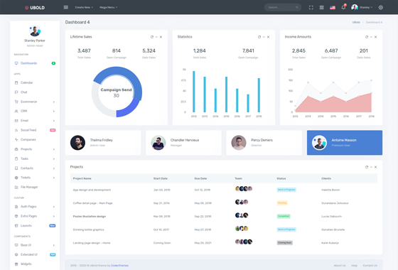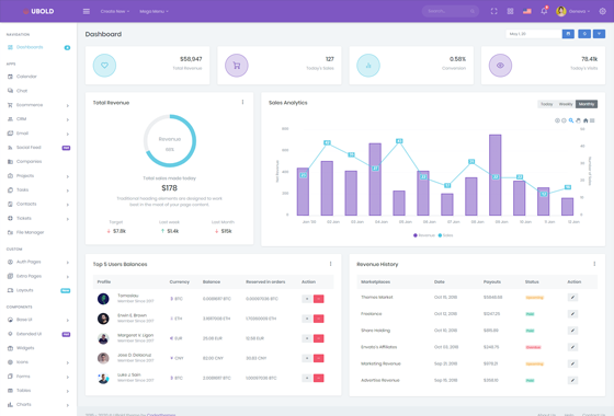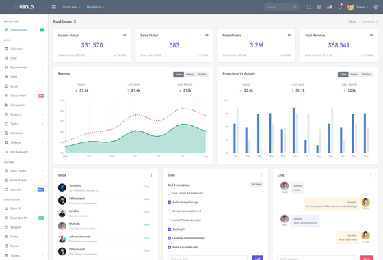 Ubold is a fully featured dashboard and admin template comes with tones of well designed UI elements, components, widgets and applications and secondary pages.